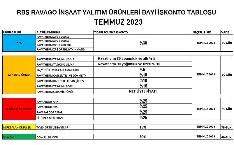 Değerli İş Ortağımız, RBS Ravago Ürün Gruplarımızda 17 TEMMUZ 2023 gününden itibaren geçerli güncel TEMMUZ AYI Ticari politikamız ektedir. Ürün ve hizmet kalitemizden taviz vermeden, sizlere mümkün olan en uygun koşullarla servis vermeye devam edeceğimizi bilgilerinize sunarız.