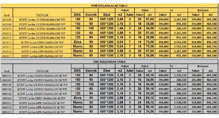 Taşyünü Levhalar - 90 Dahil Üstü Yoğunluklar >> Liste Fiyatı Üstünden %15 İskonto + Mart Ayı Nakliye